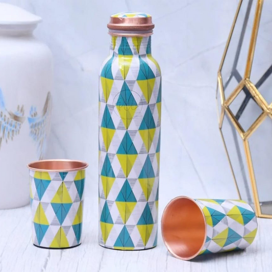 Modern Abstract Triangular Design - 100% Pure Copper Bottle Set with 2 Glasses