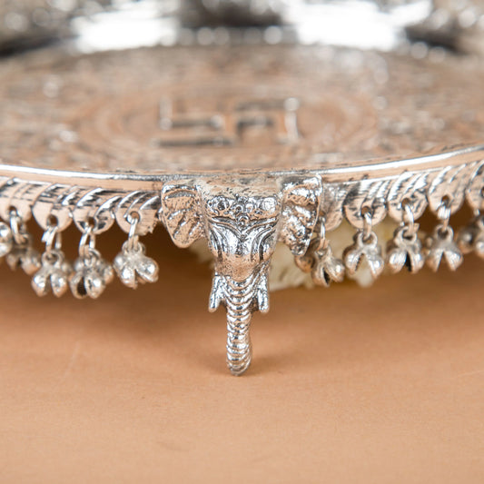 Intricately Designed Silver Pooja Thali Set with Elephant Trunk Shaped Stand