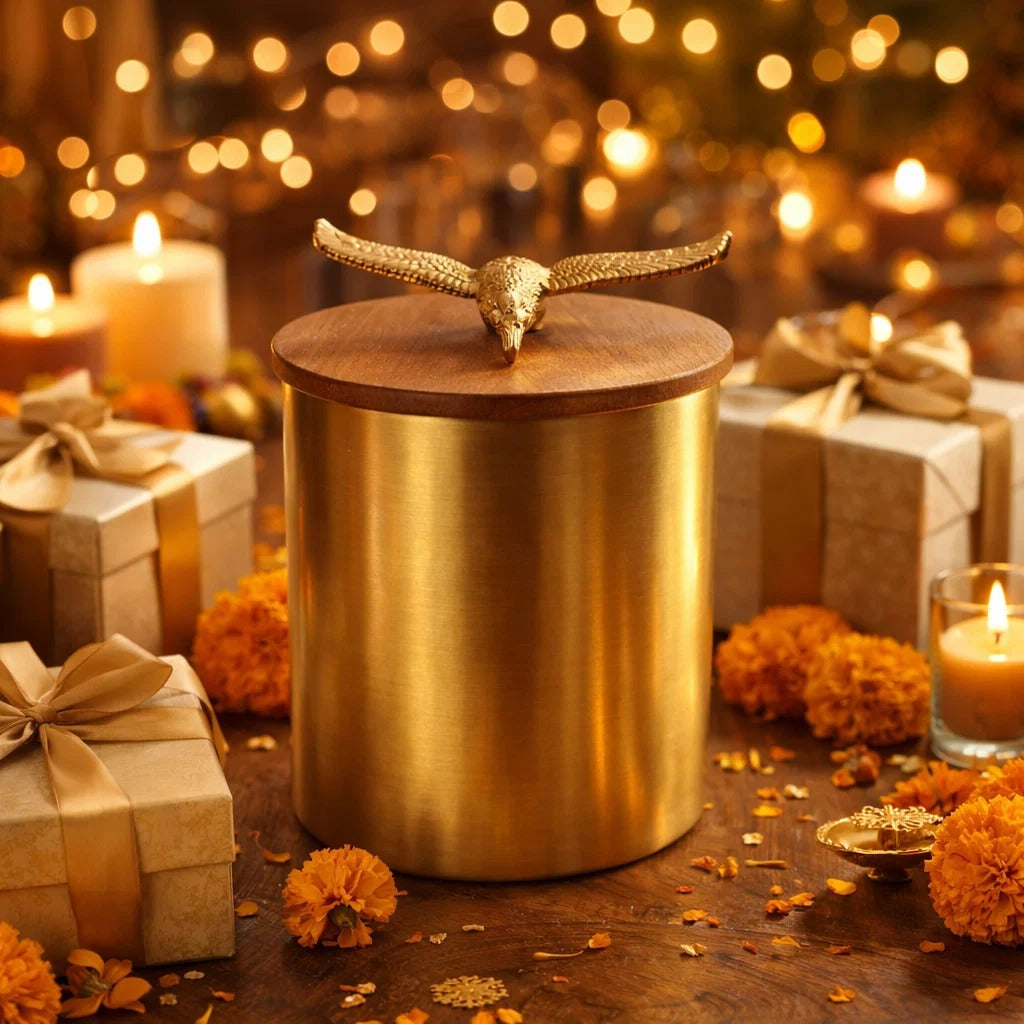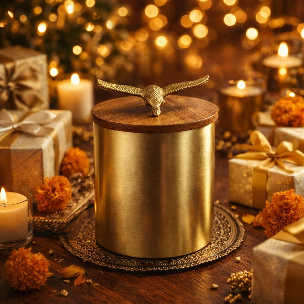 Golden Eagle Brass Storage Jar with Airtight Wooden Lid