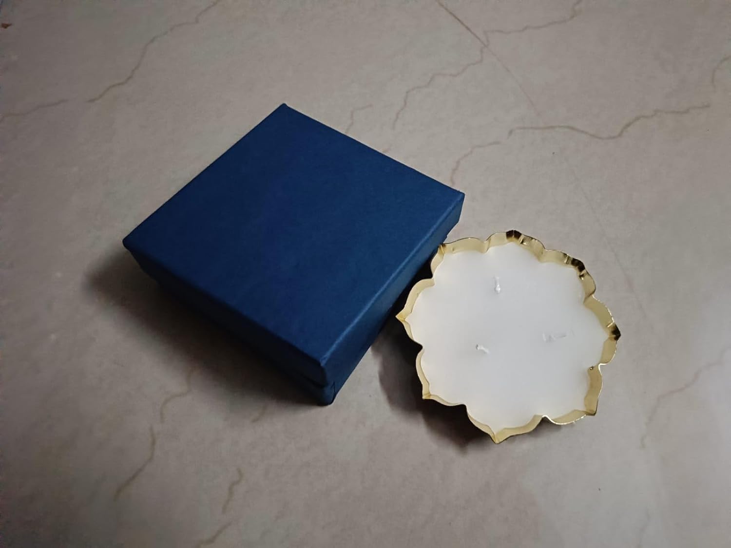 Elevate your home's ambiance with this exquisite scented candle from JAIN ART VILLA, presented in an elegant blue gift box. This beautifully crafted Urli candle combines the rich, sophisticated notes of Oudh with the sweet, comforting essence of Vanilla, creating a luxurious fragrance experience. The candle features a distinctive floral design with gold-trimmed edges, making it both a decorative piece and a functional accent for your living space. Perfect for creating a warm, inviting atmosphere during special occasions or everyday relaxation, this candle serves as both a thoughtful gift and a stylish home décor item. The premium packaging ensures a delightful unboxing experience, while the carefully formulated fragrance blend provides long-lasting aromatic pleasure. Whether placed in your living room, bedroom, or meditation space, this candle adds a touch of sophistication while filling your space with its enchanting scent. |