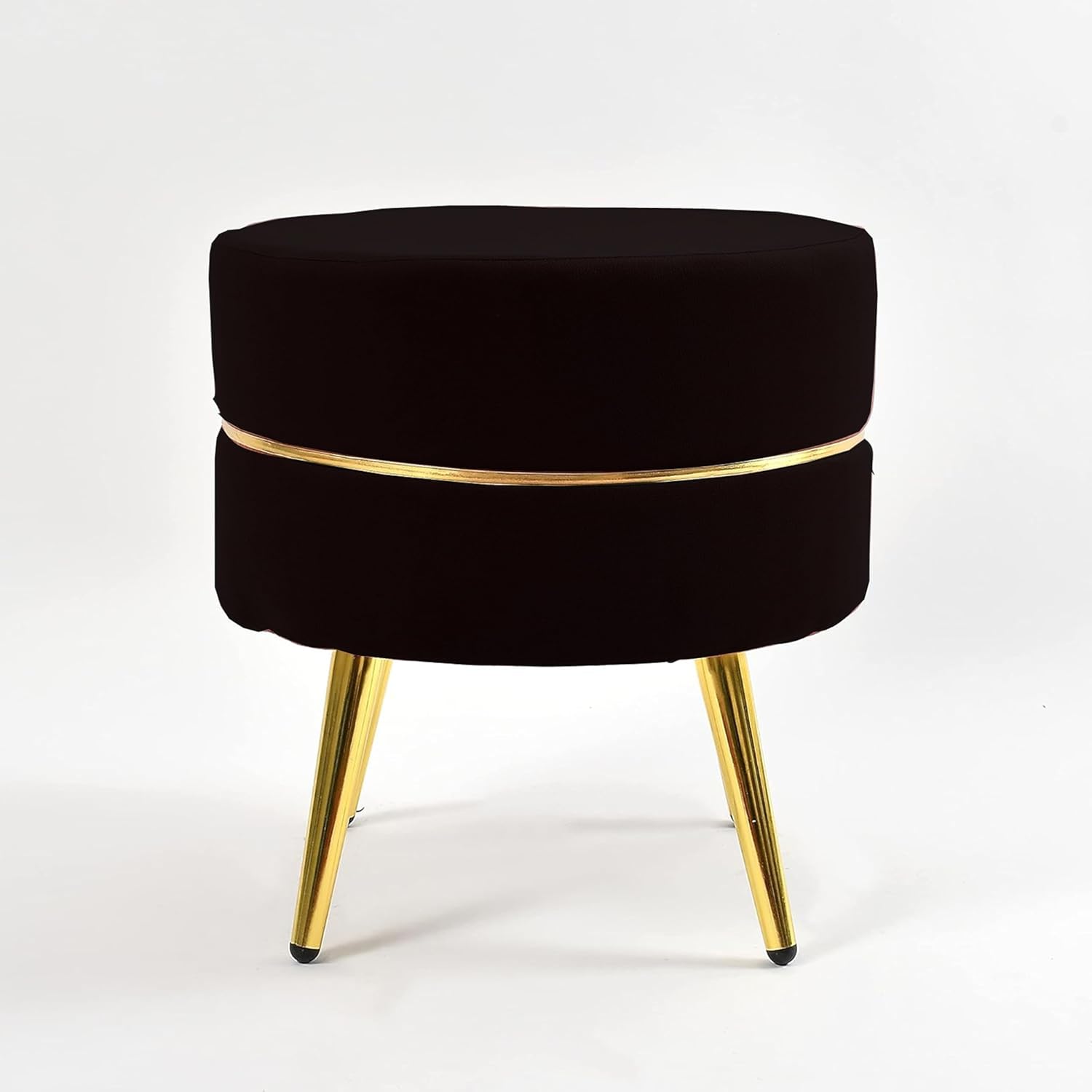 Metallic Living Room Stool with Four Golden Legs | Black Ottoman Seating Pouffe, Puffy Footstool for Home Décor